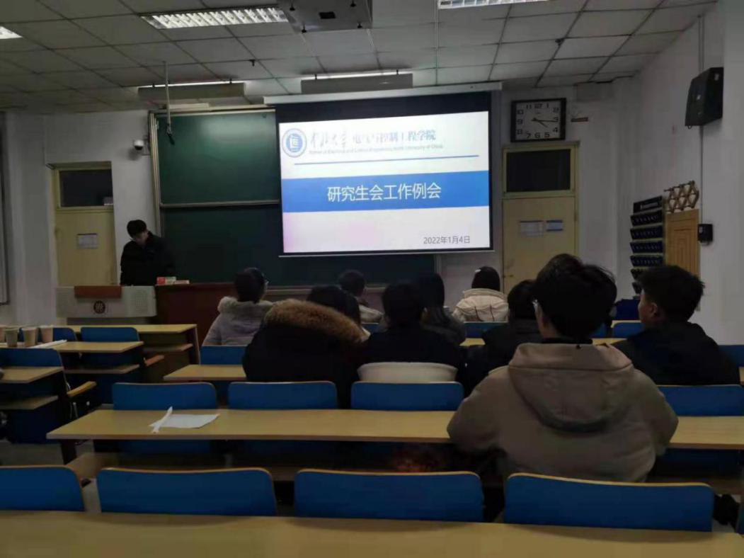 2022年1月4日下午,银河yh533388研究生会在11111H教室召开工作例会,会议由李婷老师主持,全体研究生会成员参加。