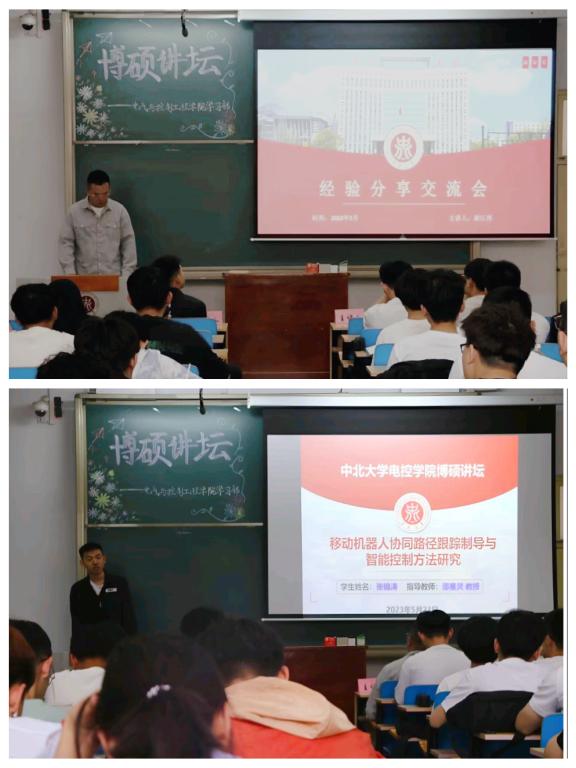 随后,张锦涛同学分享了他目前正在研究的课题——移动机器人协同路径跟踪制导与智能控制方法研究。他表示,在现代物流领域,移动机器人的应用越来越广泛,但是如何实现多机器人间的协同行动,仍然是一个挑战。因此,他的团队致力于研究移动机器人的协同路径跟踪与智能控制方法,并取得了不错的成绩。最后,他还分享了一些他在攻读硕士学位期间取得的研究成果。2023年5月4日,《人民日报》刊登了2021-2022学年度研究生国家奖学金获奖学生代表名录,张锦涛同学荣登名录,全省仅3名学生上榜。