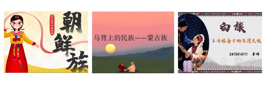 我院共有60名少数民族同学,涵盖15个民族。本期活动率先迎来白族、朝鲜族和蒙古族三个民族同学的积极参与和分享交流,以“践行知行合一 体验民族服饰风华”为主题,展开了一场别开生面的文化之旅。同学们精心制作分享材料,生动地展示了本民族服饰背后蕴含的深厚文化以及独特风俗。白族服饰的清新典雅、朝鲜族服饰的色彩绚丽、蒙古族服饰的豪迈大气,每一处细节都展现出民族文化的魅力,让现场师生仿佛置身于各民族的多彩世界中。