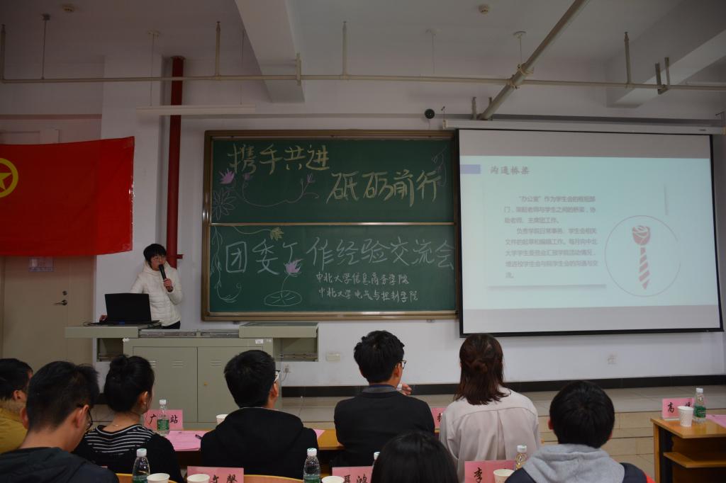 为加强和改进团的自身建设,全面提高学生的综合素质,开拓进取,脚踏实地,营造良好的学院文化氛围,2017年12月2日,由我院团委和中北大学信息商务学院团委共同举办的团委工作交流会在我校15406教室隆重召开。