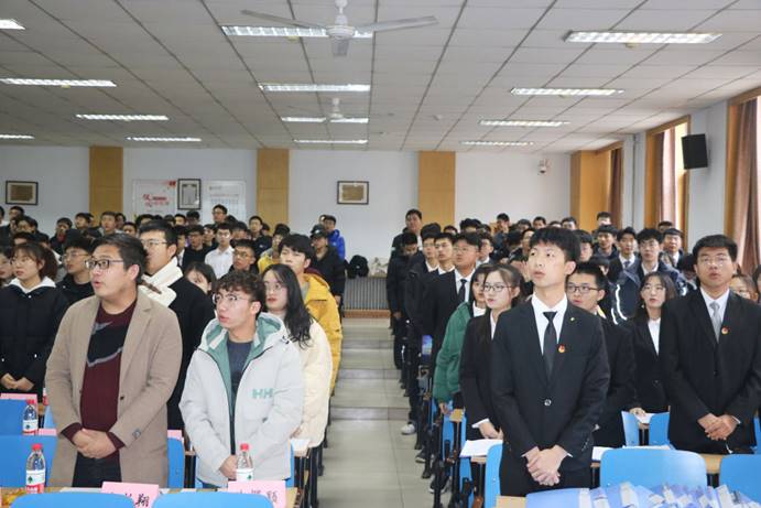 会议在庄严的共青团团歌中拉开序幕,全体与会成员起立团歌。庄严的团歌响起,让在场的各支部成员意识到作为一名光荣的团员,践行社会主义核心价值观义不容辞。会议开始,由主持人宣布答辩规则及评分细则。每位答辩人答辩结束后,评委可对答辩者进行提问。