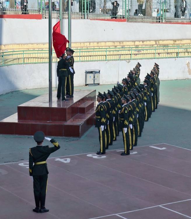 开幕式在主操场举行,在校领导的致词下,进行了庄严的升旗仪式,随着主席台上发出指令,升旗仪式正式开始,国旗护卫队队员踏着整齐划一,铿锵有力的正步,走到旗台前,伴随着庄严的国歌声,鲜艳的五星红旗冉冉升起,全体人员再一次向抗日救亡运动游行的英雄们致敬。我院院团委书记郝国臣,团委副书记高瑞珍出席此次开幕式。