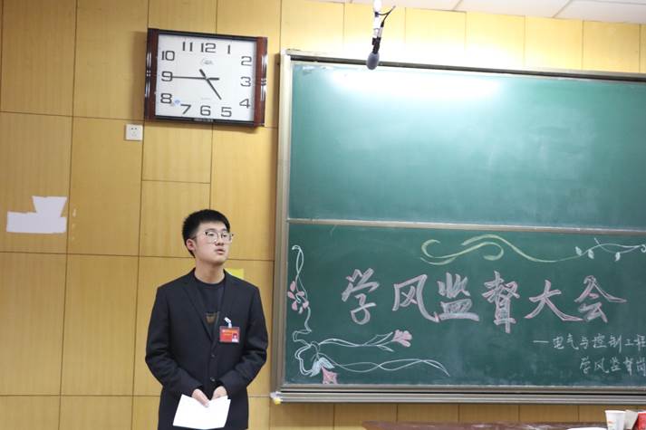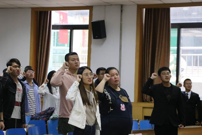 紧接着,院学风监督委员会主任滑金一为大家详细讲述了查课细则,并要求各位学风监督员签写承诺书,保证公平公正地为我院学风监督事业贡献出自己的一份力。最后,滑金一带领全体学风监督岗成员宣誓,用嘹亮整齐的宣誓声展示了自己对建设学院优良学风的信念与决心。