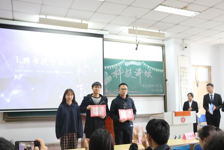 活动开始,由银河yh533388学习部部长刘月婷为两位主讲人颁发聘书。