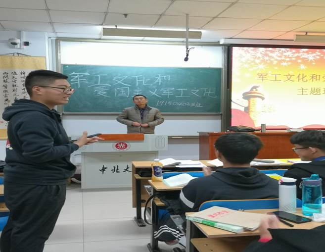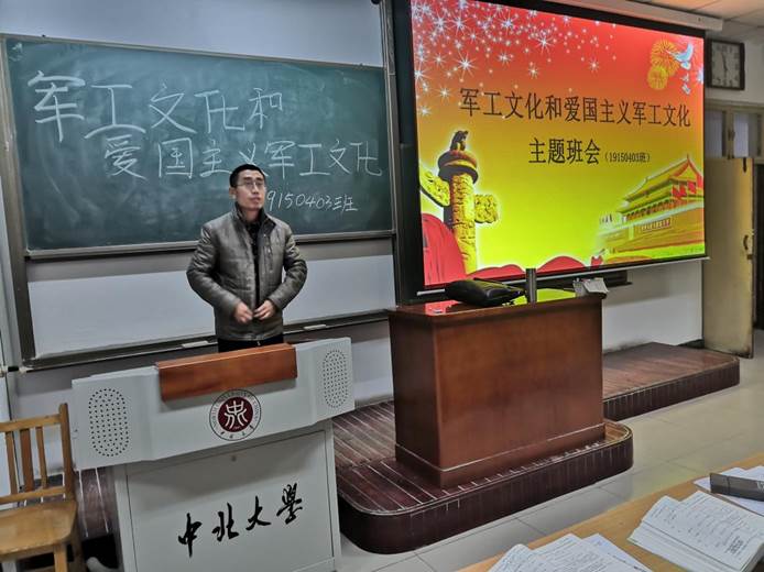 为庆祝新中国成立70周年,弘扬我校一以贯之的兵工血脉和红色基因,10月28日,由我院电气类19150403班在11105H组织并举办的军工文化和爱国主义教育主题班会顺利开展,本次班会有幸邀请到韩伟老师作为主讲嘉宾。